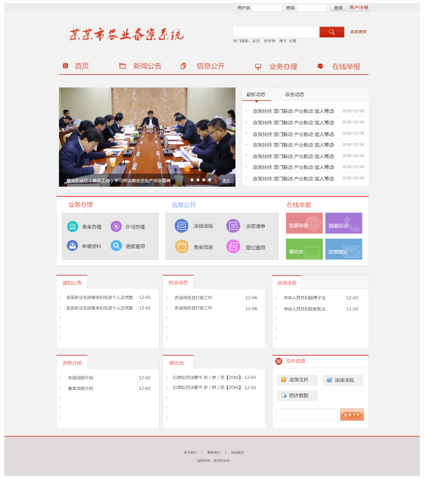 1. “新聞公告”模塊主要是發(fā)布一些新聞、公告和動態(tài),既可以像群眾傳達(dá)信息,又可以增加農(nóng)業(yè)綜合執(zhí)法的透明度。